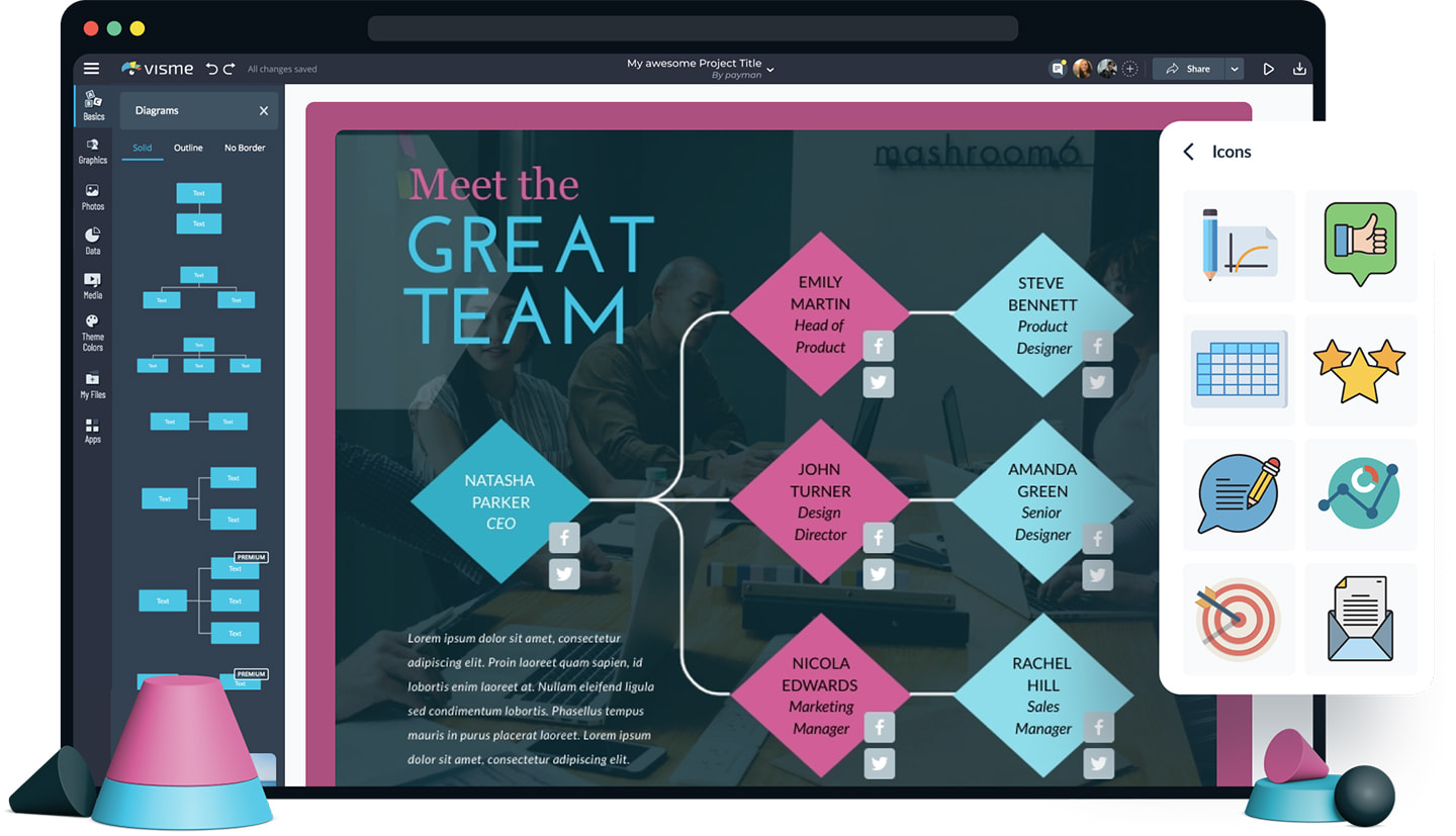 Visme - free open source alternatives of Creately, EdrawMax, Visio